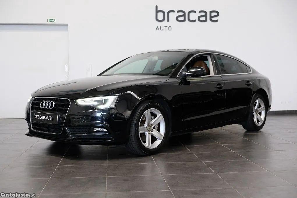 Audi A5 Sportback 1.8 TFSI, viatura a gasolina de 170 cv de potência, equipado com ar condicionado, jantes de liga leve, leds diurnos, sensores de parqueamento, estofos em pele e muito mais.