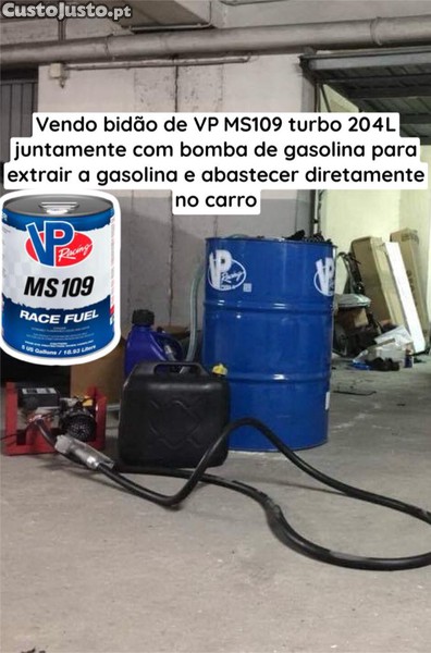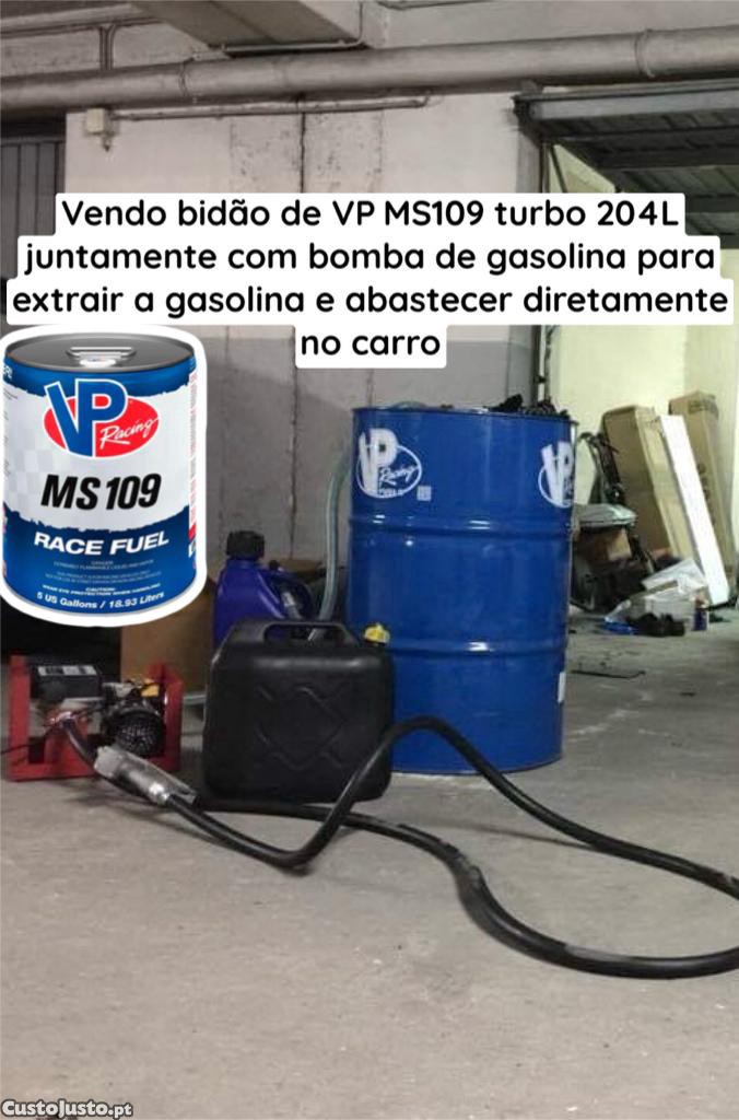 Bidão de gasolina VP Racing MS109 turbo 204L juntamente com bomba de gasolina para extrair a gasolina e abastecer diretamente no carro.