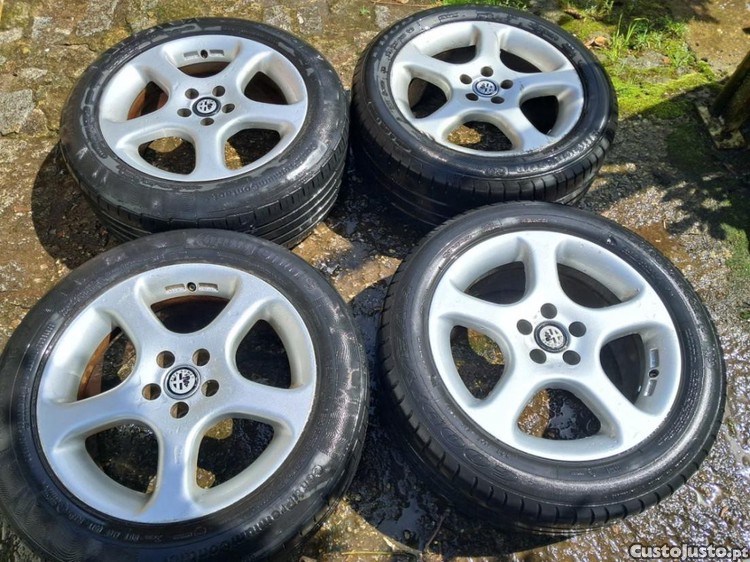 Jantes Autec de 16 polegadas, com pneus (2 Continental e 2 Good Year), medida 205 55 R16. Furação 5x98. Alfa Romeo, Lancia, Fiat, etc. Pneus ainda com bastante piso. Uma das jantas tem uma amassadela conforme foto e precisa de reparação. As outras 3 estão boas.