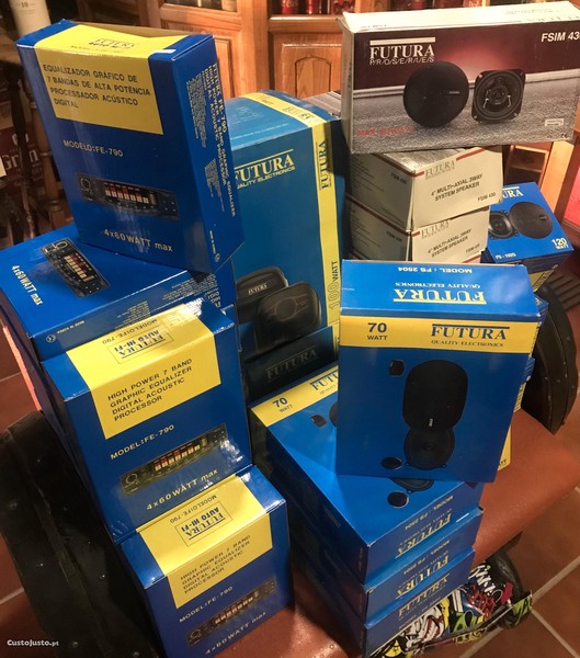 10 equalizadores,1 amplificador 150w,2 colunas 100w,5 colunas 120w,4 colunas 70w,6 colunas 80w,1 coluna 60w... tudo novo marca futura.