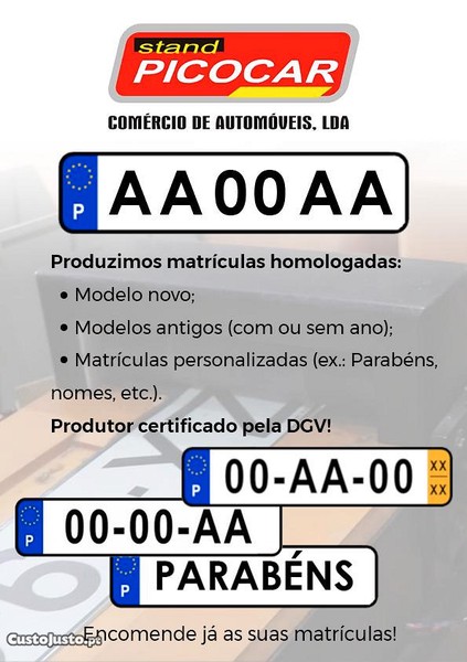 Preço: 7 €Matrícula automóvel (todos os modelos)
