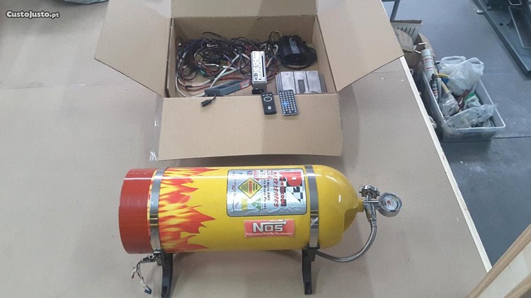 Subwoofer look botija de Nitro, DVD, Leitor DVD com comando, e restante equipamento.
