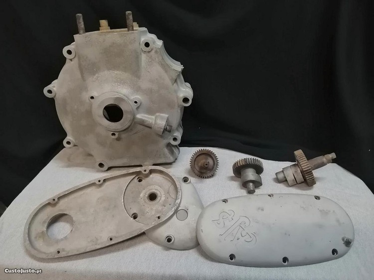 Bloco de motor/carters mota antiga AJS 350cc e carretos de comando.