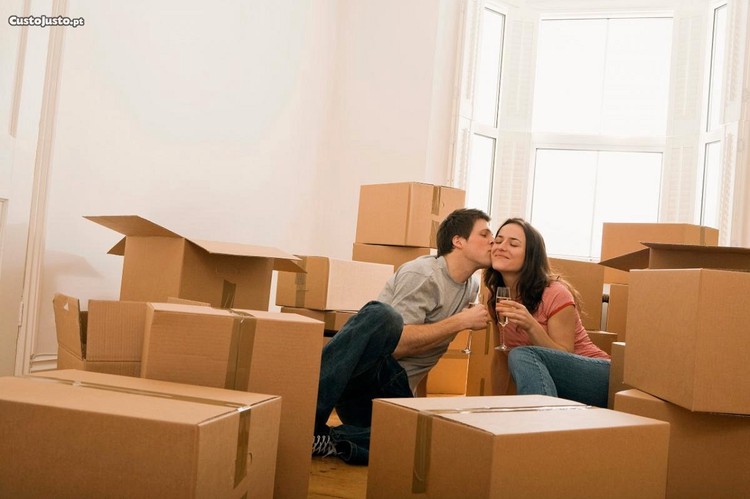Transporte de bens devidamente acomodados com cartão, película e cobertores.