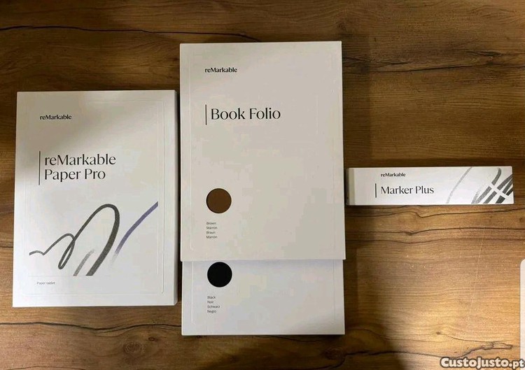 Vendo o meu tablet reMarkable Paper Pro, novo e selado, com 2 capas Book Folio, um Marker Plus e ponteiras de substituição. Factura de compra incluída.