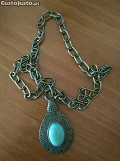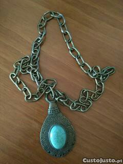 Vendo colar em corrente larga, pendente com pedra verde.