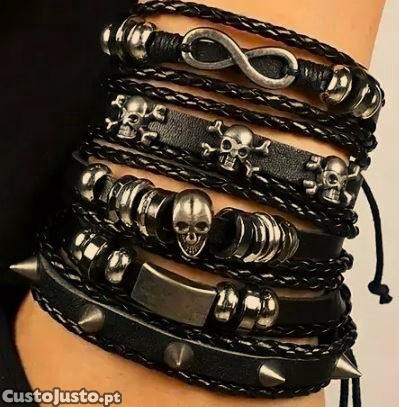 Conjunto de 5 Pulseiras de couro Rock/gótico - PORTES GRÁTIS
