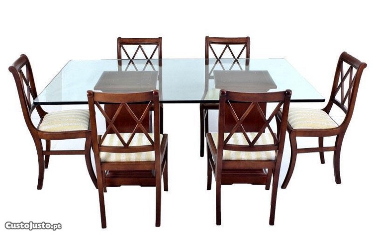 Preço: 460 €Conjunto mesa tampo vidro e 6 cadeiras