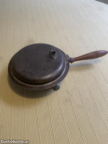 Terrina em metal com tampa e pega em madeira, diâmetro 15cm.