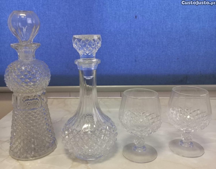 Garrafas de licores e digestivos com copos - completo ou em separado