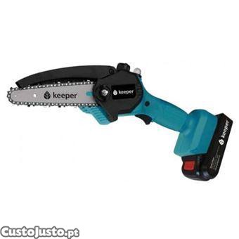 Serra elétrica que funciona com uma bateria de 18V. Adequado para uso não profissional para corte de madeira com espessura não superior a 80 mm. Ideal para poda e corte de lenha. Inclui bateria, kit de ferramentas (chave de fenda e óleo), carregador e estojo de transporte. Potência nominal: 150 w. Potência máxima: 300w Corte máximo: Ø 60-80 mm. Peso com bateria: 1,8kg.