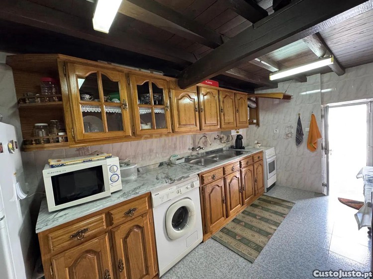 A moradia dispõe de um quarto com cama de casal, uma sala de estar luminosa, uma cozinha equipada e um banheiro compartilhado. Com tetos altos e janelas duplas, a propriedade garante uma excelente exposição à luz natural. Os acabamentos incluem paredes pintadas, chão em madeira e azulejo, além de eletrodomésticos como máquina de lavar, forno e micro-ondas.