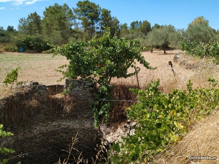 O imóvel apresenta algumas oliveiras, duas construções em pedra e um poço com boa construção.