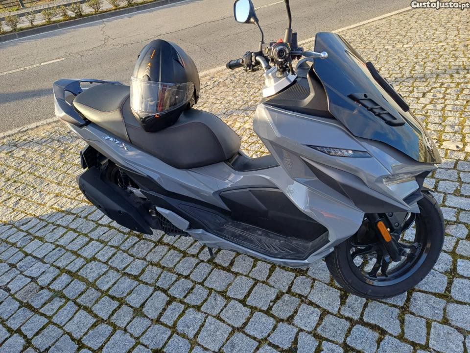 Sym jetx 125cc 2024 2100km com revisão feita. Com 2 capacetes e suporte de telemóvel e cadeado de rodas. Com garantia de fabrica