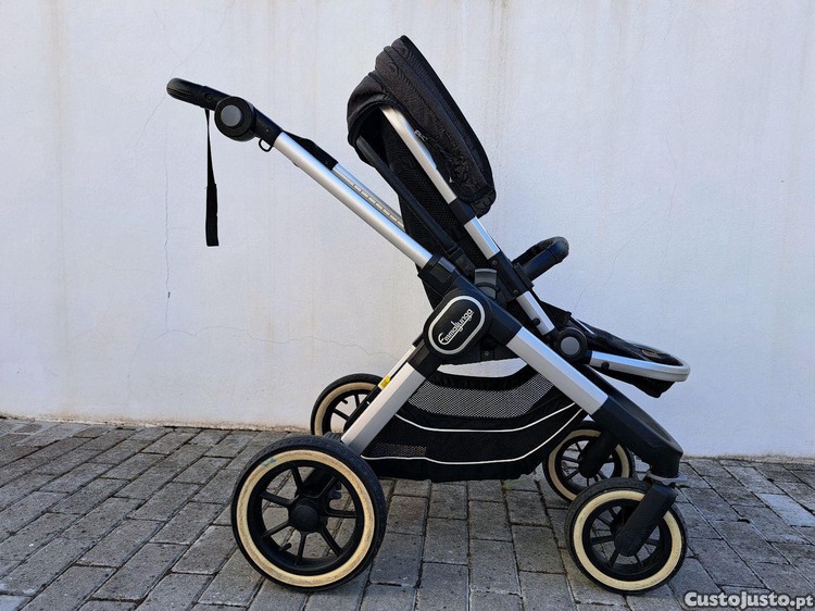 Preço: 300 €Carrinho de bebé Emmaljunga NXT90 Lounge Black com alcofa, cadeira e proteção chuva bom estado