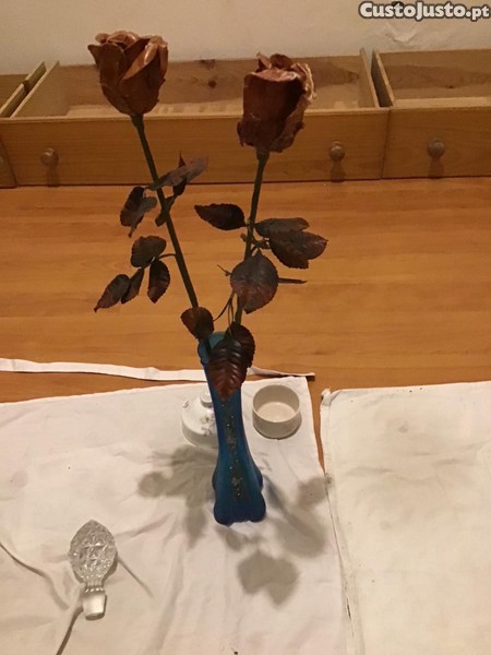 Preço: 2 €jarra azul com 2 rosas artificiais