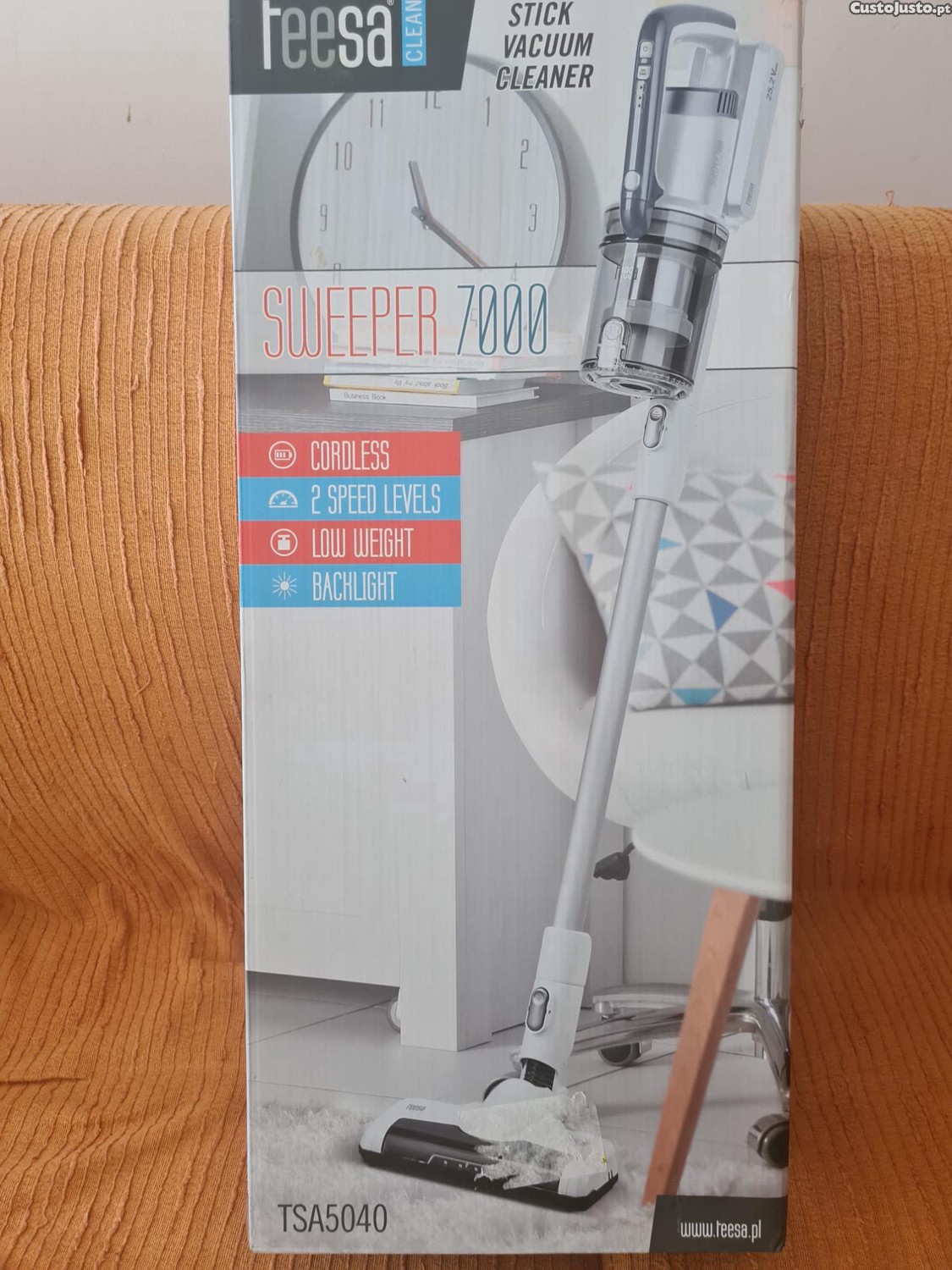 Teesa Sweeper 7000 - vendo aspirador de pó vertical sem fios com filtro HEPA e luz de fundo, ideal para quem procura praticidade e eficiência na limpeza diária.