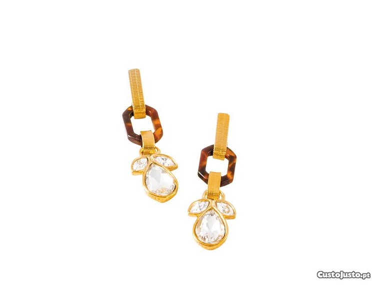 Brincos. Carey sintético. Fecho de pressão.