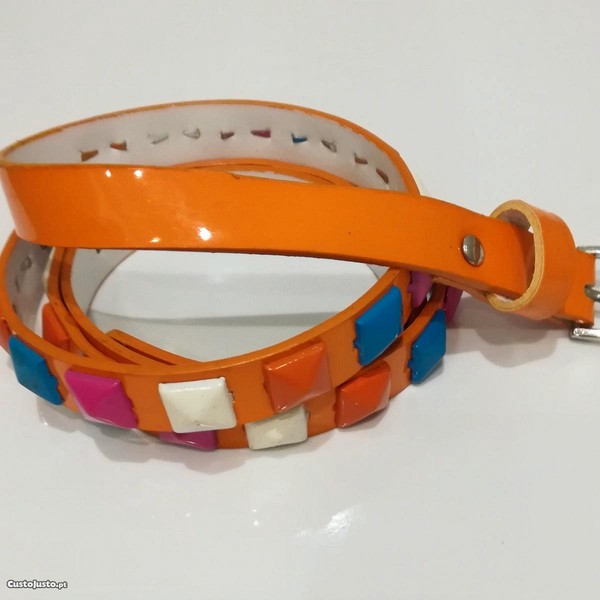 Preço: 4 €Cinto Fino Laranja com Tachas Coloridas