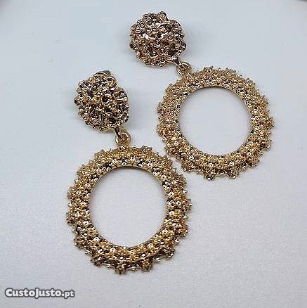 Preço: 10 €Par de Brincos Dourados Vintage com Relevos