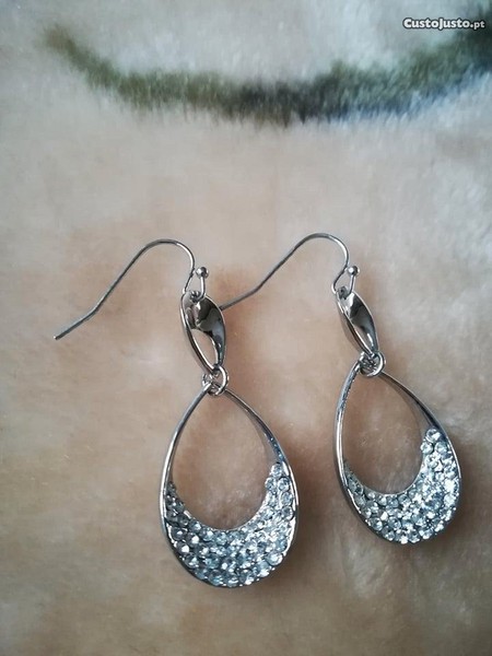 Preço: 4 €Par de Brincos Prateados com Pedras Brilhantes