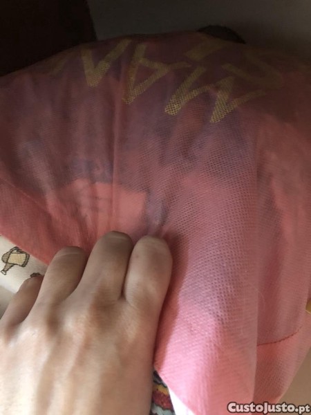 Preço: 1 €saco mango rosa de pano com letras amarelas