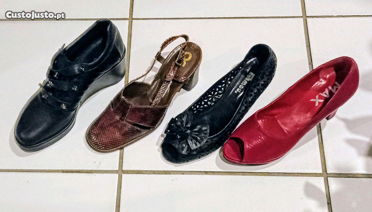 Sapatos vermelhos tamanho 38 em pele, salto 8cm, abertos à frente,nunca usados, 5.