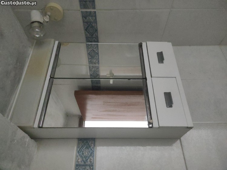 Armário de casa-de-banho de parede, com 2 portas em espelho e 2 gavetas.