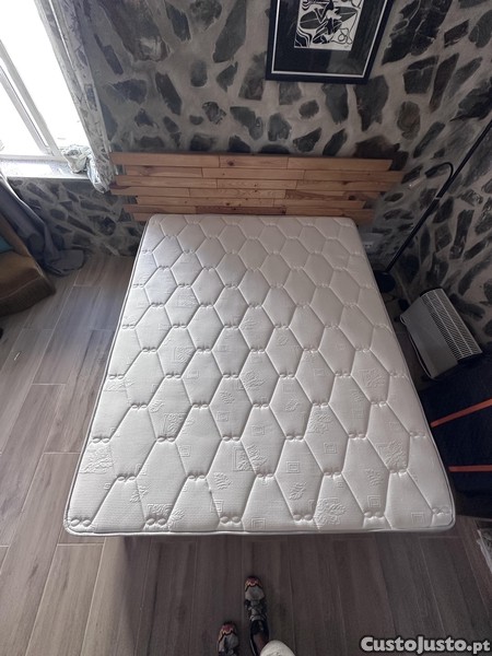 Base e colchão novos, tamanho 160x200cm. O estrado de ripas é revestido a tecido preto. O colchão tem molas encapsuladas e é um imperial ortopédico Conforsoft topo de gama com lados de verão e de inverno. 160x200x23cm.