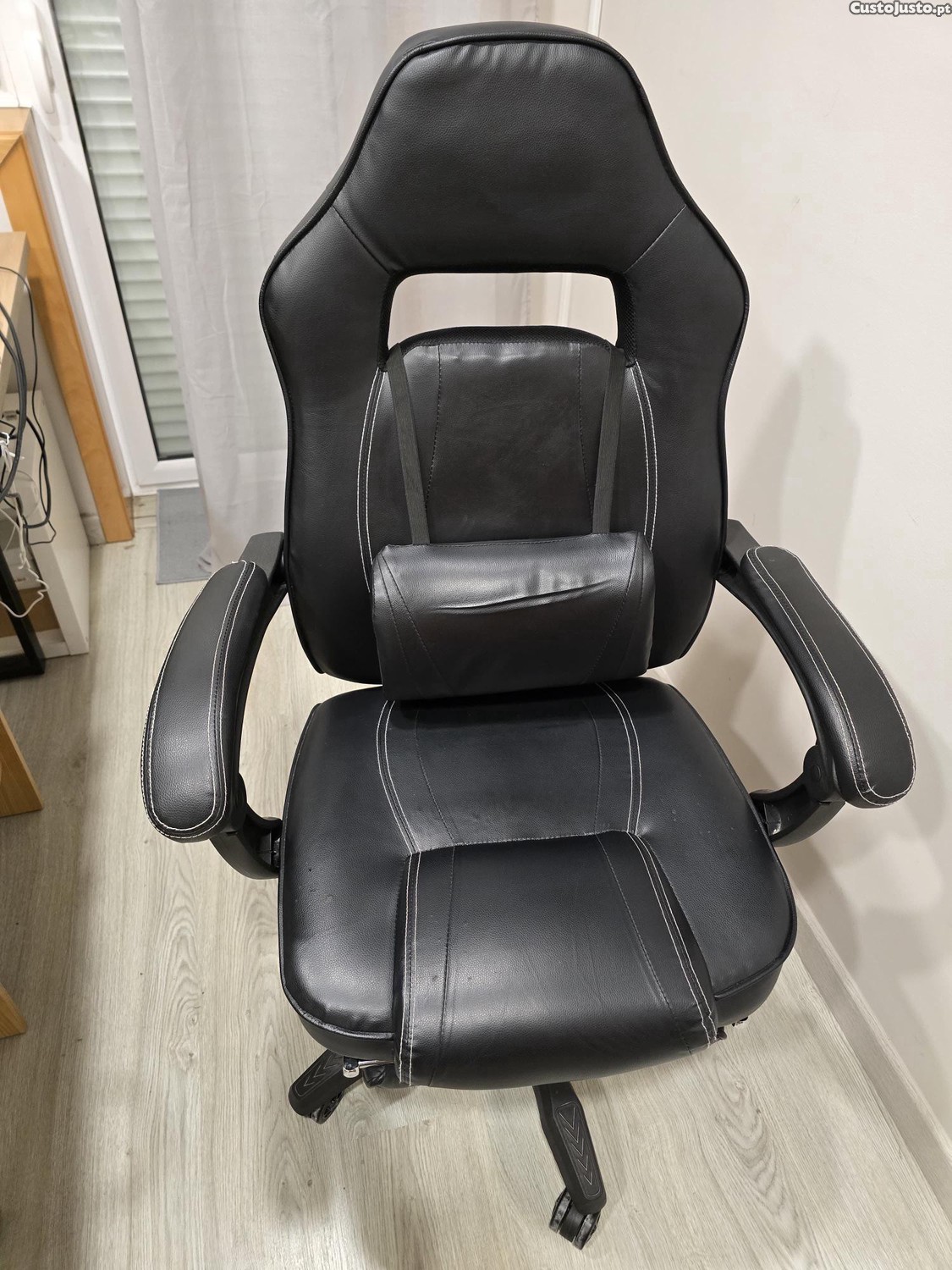 Cadeira dá para recostar de forma a ficar deitado/a com os pés estendidos.