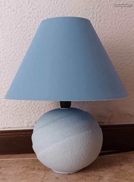 Candeeiro de mesa de cabeceira (azul) como novo, base em cerâmica