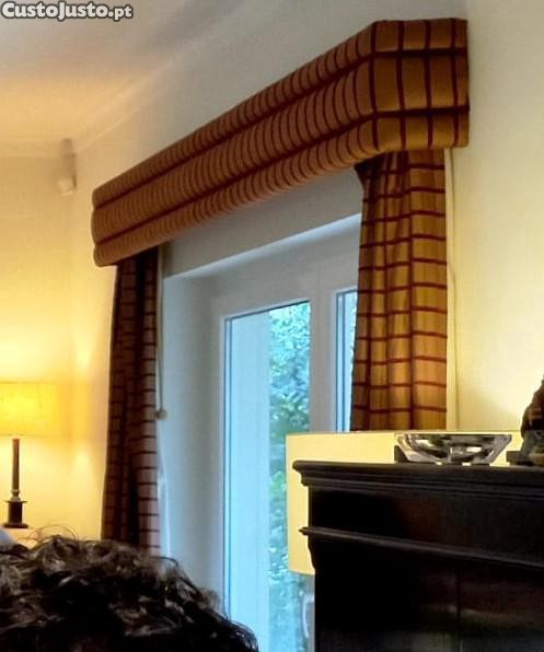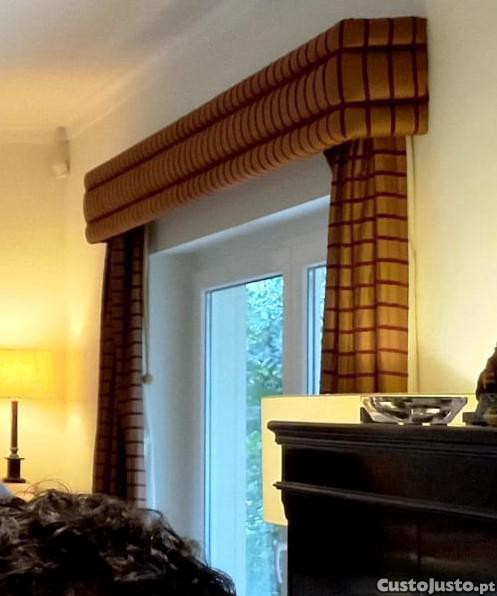 Preço: 75 €Conjunto de 3 Sanefas, 6 cortinados e acessórios