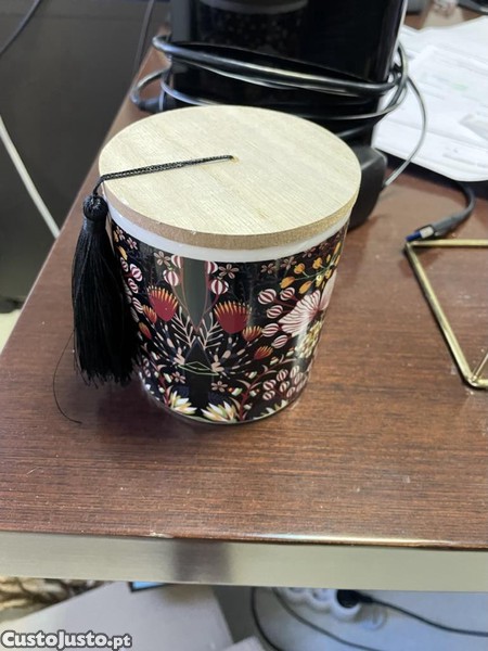 porta velas colorido padrao com tampaporta velas colorido padrao com tampa