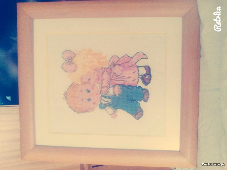 Quadro novo para decorar quarto de bebé com moldura, feito em ponto cruz.