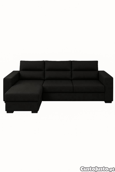 Preço: 450 €Sofá-Cama com Chaise Longue 3 lugares Revestido a Pele Cor Preta