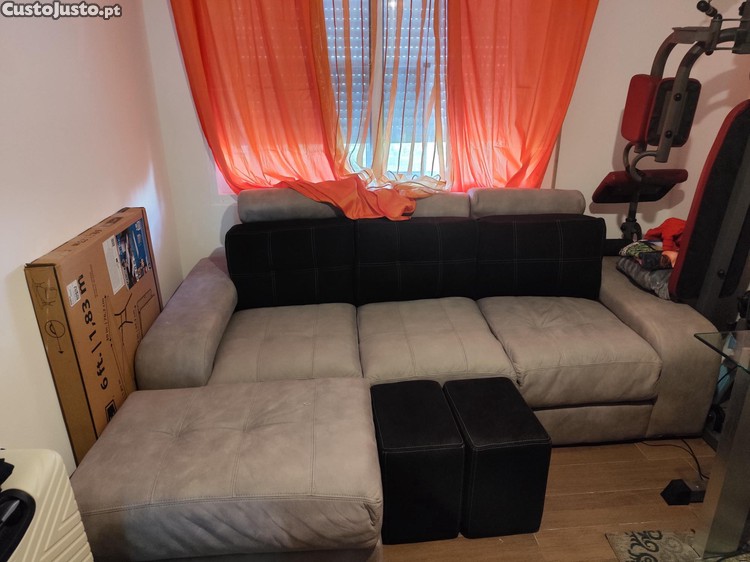 vendo sofa 3 lugares mais 3 pufs usado cinzento e preto muito bom estado.