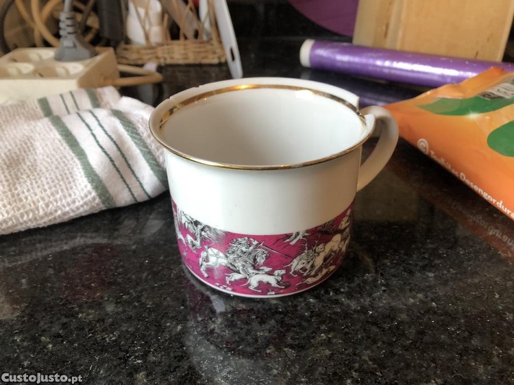 Preço: 1 €chavena branca com bordeaux antiga com linha dourada