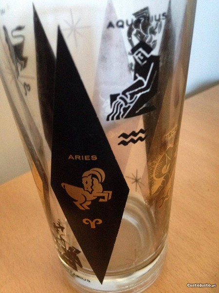 Vendo conjunto de 5 copos, com 14cm altura., motivo signos .