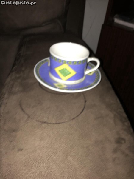 Preço: 2 €conjunto de chavena e pires para cafe azul e amarela