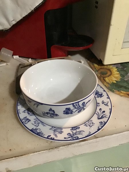 conjunto de taca e prato azul e branco conjunto de taca e prato azul e branco