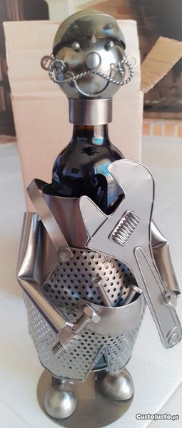 Preço: 25 €Peça vintage - Porta garrafa em aço inoxidável, em forma de boneco (mecânico) NOVA