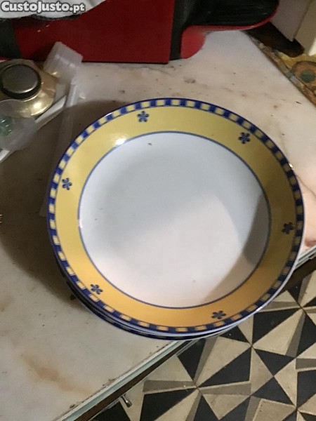 prato de sopa azul e amarelo prato de sopa azul e amarelo