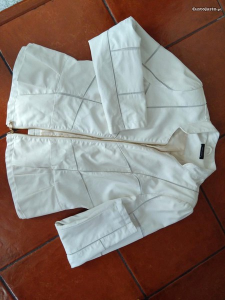 Preço: 20 €Casaco branco em pele maleável e com efeitos e folho.