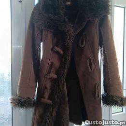 Casaco Stradivarius em pele tipo camurça e pelo no interior.