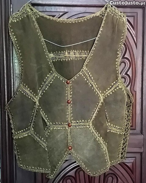 Preço: 26 €Colete Vintage em Pele de Porco Trabalho Artesanal com Detalhe em Costura