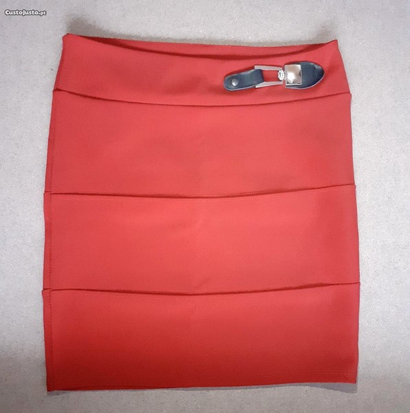 Saia vermelha com aplicação na cintura, como NOVA. Tamanho S.