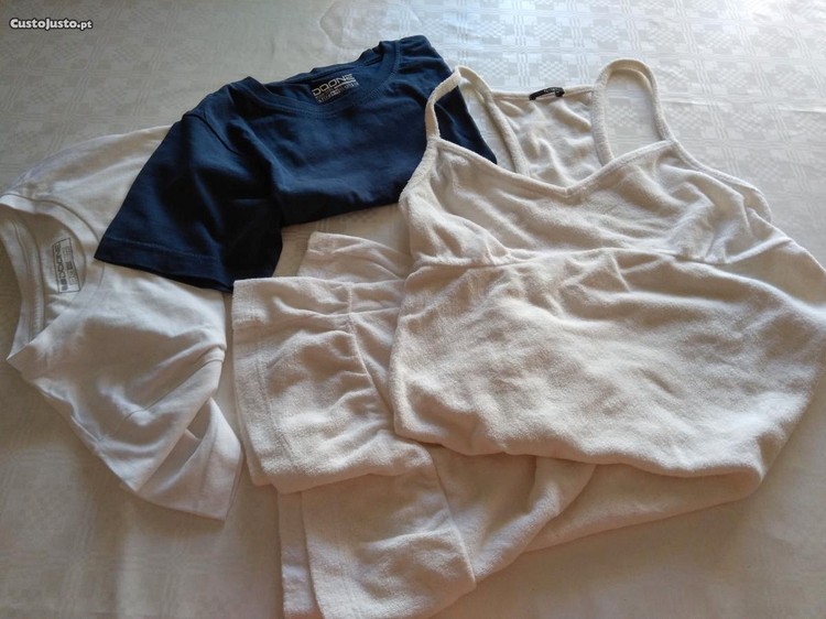 Top para desporto em rosa tecido viscose, top branco tamanho L, T-shirts e camisolas em lote ou individuais, vestido de praia branc