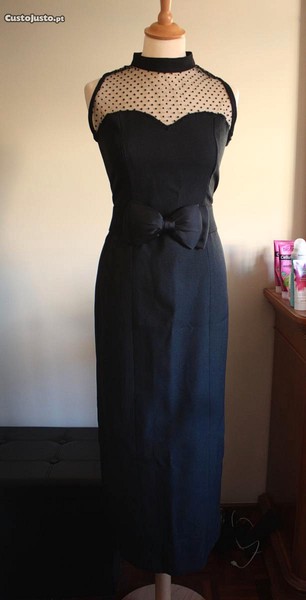 Medidas: Peito - 88 cm, Cintura - 80 cm, Anca - 100 cm, Comprimento - 128 cm.