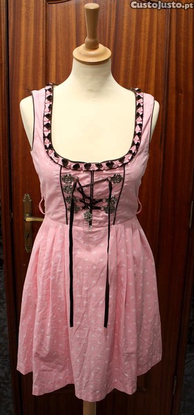 Preço: 45 €Vestido Vintage Bavarian Rosa com Avental Branco
