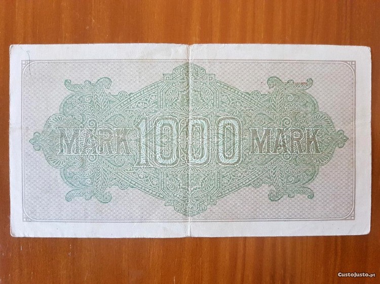 Antiga nota Alemã de 1000 Mark de 1922.